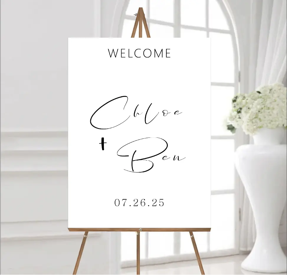 Each custom wedding sign is meticulously crafted and fully personalized with your names and wedding date. Our advanced printing technology ensures crisp, vibrant text on every material, capturing the delicate details of this exquisite design.