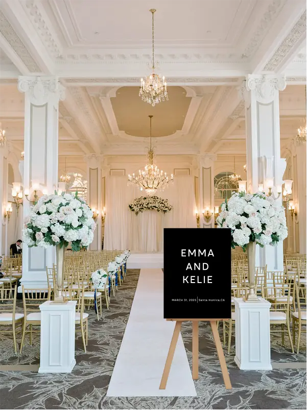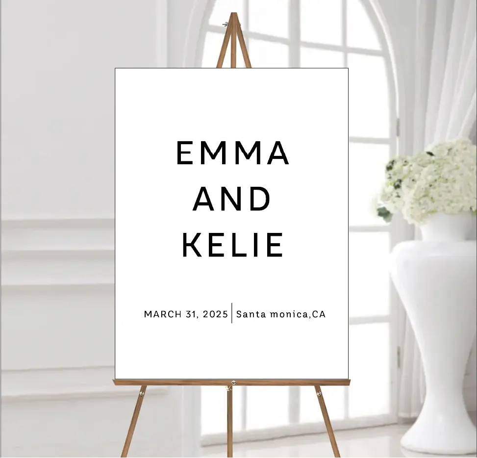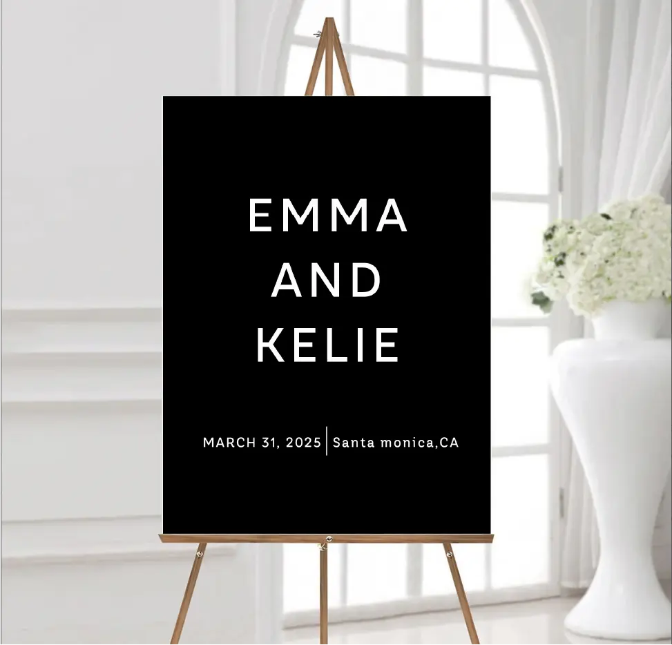 Each custom wedding sign is meticulously crafted and fully personalized with your names and wedding date. Our advanced printing technology ensures crisp, vibrant text on every material, capturing the delicate details of this exquisite design.