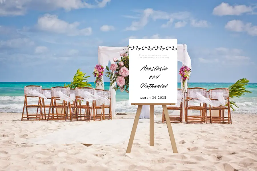 Each custom wedding sign is meticulously crafted and fully personalized with your names and wedding date. Our advanced printing technology ensures crisp, vibrant text on every material, capturing the delicate details of this exquisite design.