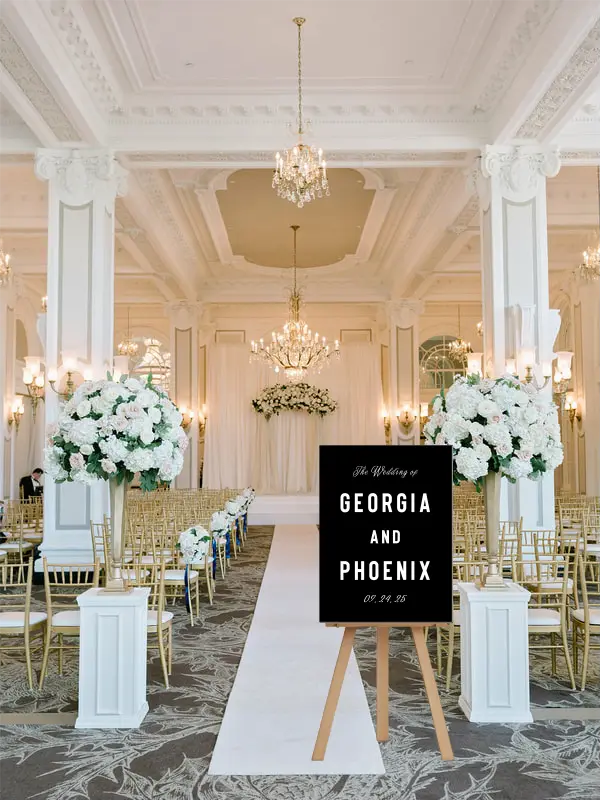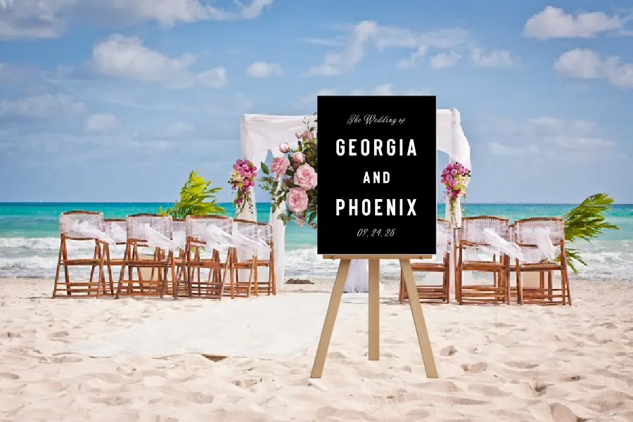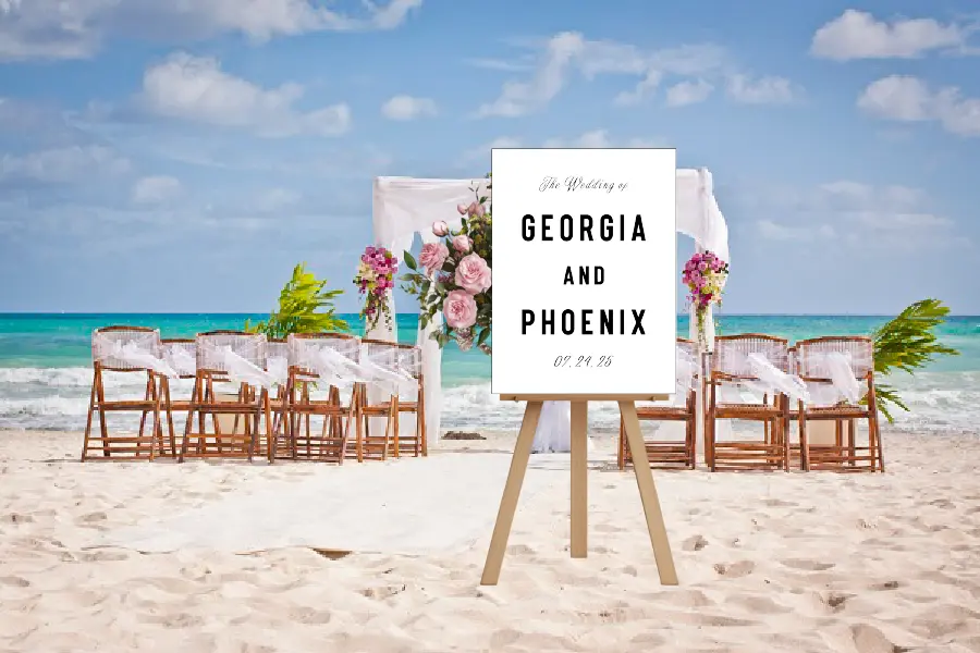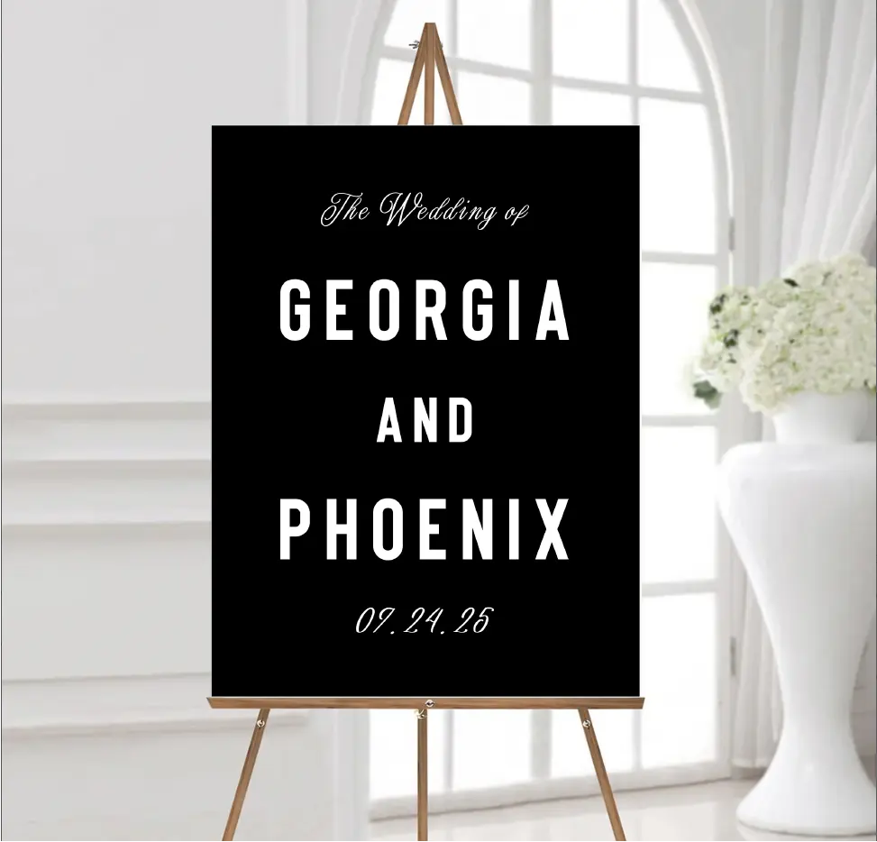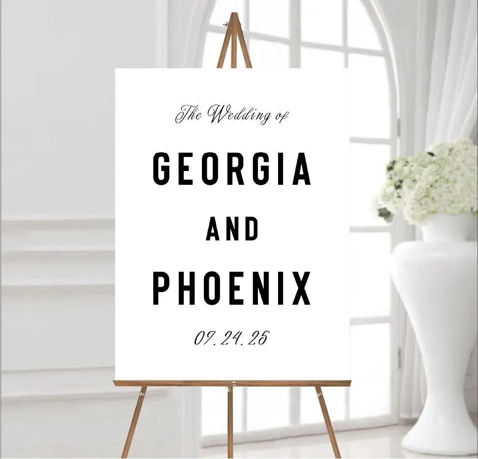 Each custom wedding sign is meticulously crafted and fully personalized with your names and wedding date. Our advanced printing technology ensures crisp, vibrant text on every material, capturing the delicate details of this exquisite design.